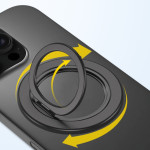La fiabilidad de la sujeción magnética va acompañada de una respuesta táctil satisfactoria durante cada rotación de 360 grados. Fabricado en resistente metal magnético, este soporte proporciona una potente sujeción a cualquier teléfono o funda compatible. El dispositivo ofrece un ajuste total para un posicionamiento óptimo en modo horizontal o vertical. Su diseño compacto y desmontable facilita su transporte y uso ocasional. El sistema magnético garantiza una rápida inserción y extracción del dispositivo, sin comprometer la seguridad.