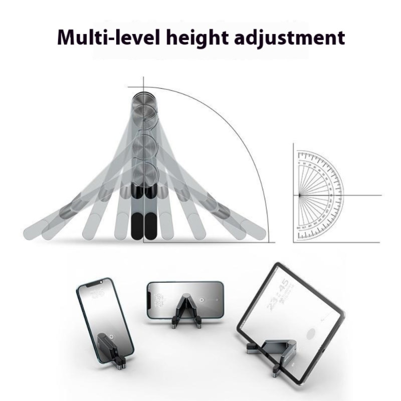 Fácilmente transportable y desplegable al instante, este soporte proporciona una base estable para una ergonomía visual esté donde esté. Fabricado en aleación de aluminio de alta calidad, garantiza una durabilidad superior y un aspecto profesional. Su diseño plegable permite guardarlo fácilmente en un bolso o maletín. Gracias a su plataforma segura y ajustable, eleva el dispositivo (de 4" a 7") hasta un ángulo de visión cómodo para videoconferencias o consumo multimedia. Este soporte universal es esencial para profesionales y estudiantes que buscan una instalación rápida y fiable.