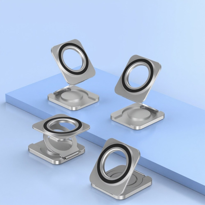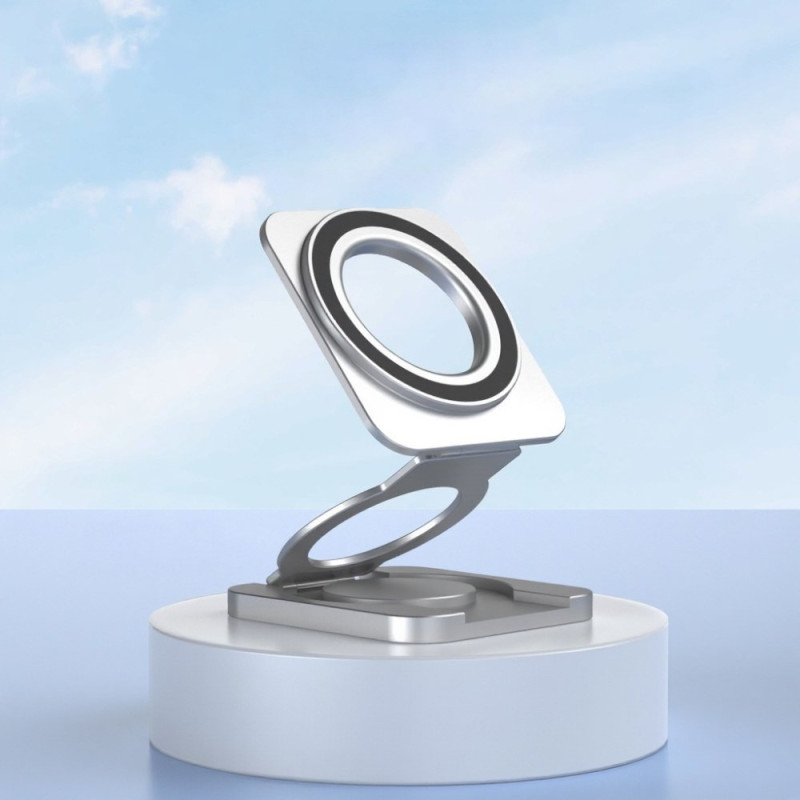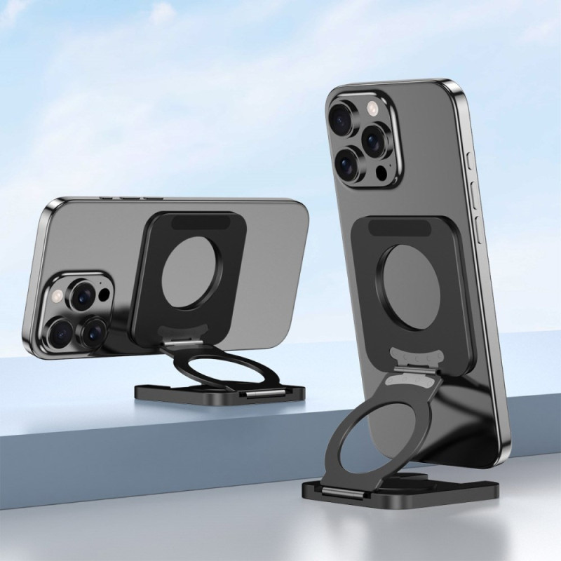 El soporte magnético de doble cara para teléfono ofrece una experiencia de uso suave y elegante gracias a su diseño de aleación aeronáutica de aluminio y silicona antideslizante. Su sistema magnético de doble cara permite una rotación de 360° y un ajuste multiángulo, ideal para el modo vertical u horizontal. Ultraplano (sólo 10 mm cuando está plegado), se desliza fácilmente en un bolsillo o bolso. Estable, ligero y compatible con todos los modelos MagSafe, se adapta por igual a smartphones y tabletas para su uso en la oficina, streaming, videollamadas o uso en el coche.