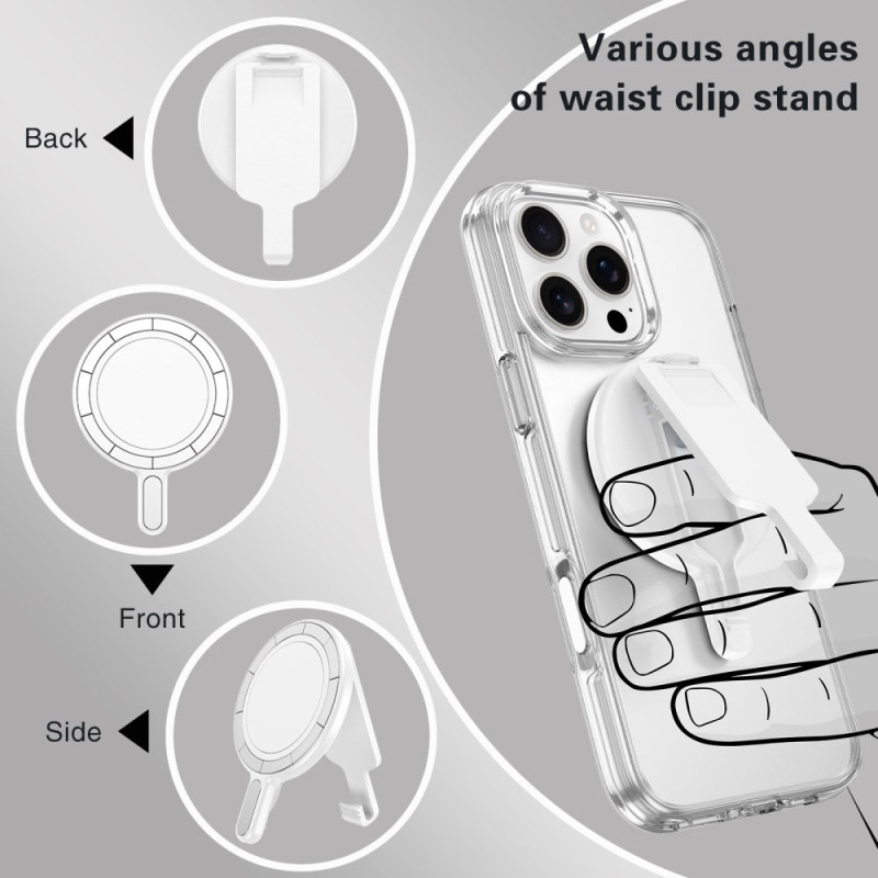 El soporte magnético universal a prueba de caídas combina potencia, elegancia y versatilidad. Equipado con un imán N52 ultrapotente de 4000 Gauss, proporciona una sujeción estable en cualquier tipo de smartphone, incluso con funda no magnética (requiere placa metálica). Su diseño multifuncional permite utilizarlo como soporte de escritorio, clip para la pantalla del ordenador o clip para el cinturón. Su clip de sujeción evita que se caiga accidentalmente, mientras que su acabado galvánico añade un toque refinado y moderno. Ideal para videollamadas, el trabajo o los viajes.