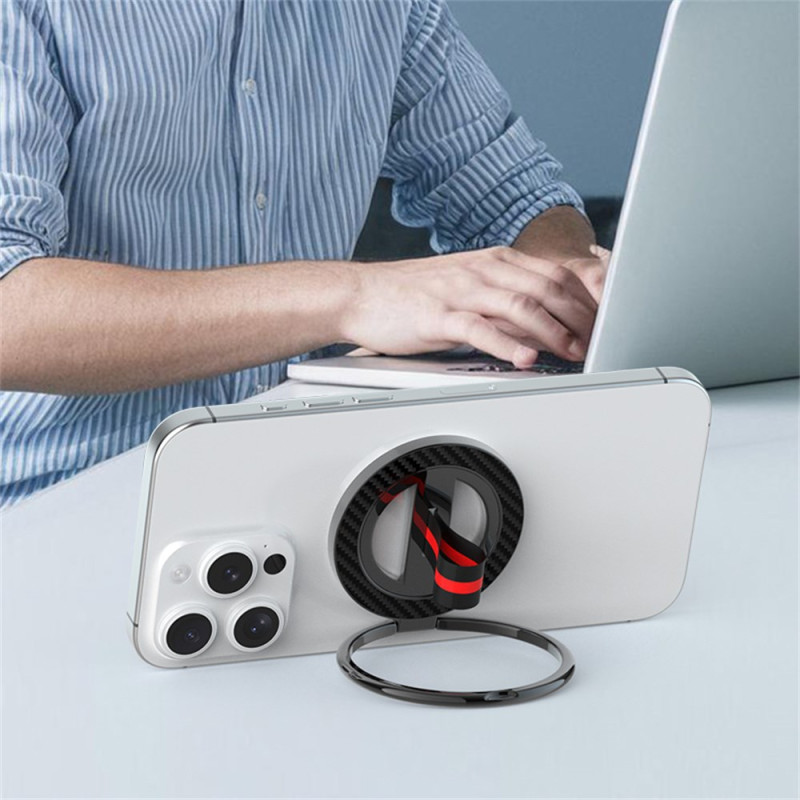 Descubra nuestro soporte magnético para teléfono compatible con MagSafe, con rotación de 360° y elegante textura de fibra de carbono. Diseño plegable y compacto para una portabilidad óptima. ¡Perfecto para todas sus necesidades cotidianas!