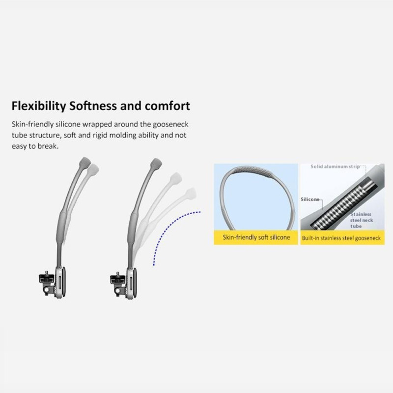 El soporte magnético para teléfono con cuello flexible es la herramienta ideal para creadores de contenidos, vloggers o streamers. Su diseño ergonómico se adapta a la nuca para ofrecer un ajuste cómodo y estable, incluso durante un uso prolongado. El potente sistema magnético garantiza una fijación instantánea y una suave rotación de 360°, ideal para filmar desde todos los ángulos. Fabricada con silicona blanda y acero inoxidable, ofrece durabilidad y flexibilidad sin riesgo de rotura. Puede llevarse alrededor del cuello o colocarse sobre una mesa, por lo que resulta ideal para cualquier escenario de grabación o visualización.