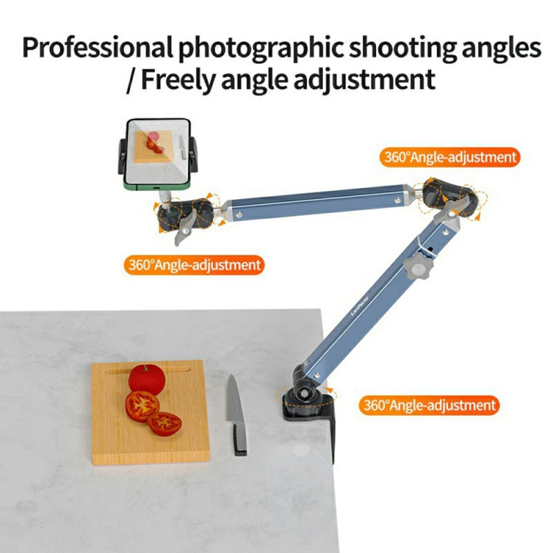 El soporte para teléfono y tablet con doble ventosa LS-T02 ofrece una solución estable, práctica y versátil para el uso diario. Compatible con dispositivos de 4" a 12,9", sujeta smartphones y tablets con seguridad gracias a su gran pinza y potentes ventosas. Su sistema de rotación mecánica permite ajustar libremente el ángulo de visión para trabajar, ver vídeos o seguir una receta. Plegable y fácil de transportar, puede colocarse sobre un escritorio o una mesilla de noche. Fabricado en metal, plástico y silicona, combina durabilidad, comodidad y seguridad.