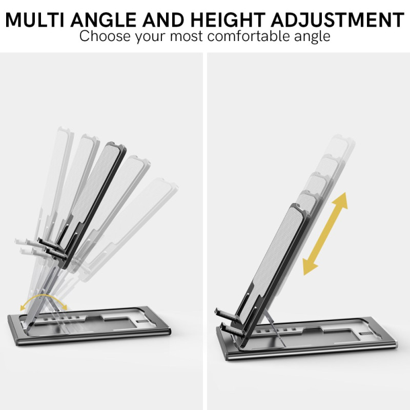 El soporte de escritorio AHASTYLE ofrece una solución elegante y ergonómica para sujetar sus dispositivos a diario. Gracias a su sistema de apertura rápida y a sus múltiples ángulos de ajuste, facilita la adopción de la posición de visión ideal para trabajar, estudiar o ver vídeos. Fabricado con una robusta aleación de aluminio, ofrece una excelente estabilidad sin dejar de ser ligero y duradero. Su estructura plegable facilita su transporte y almacenamiento. Compatible con portátiles, tabletas y smartphones, eleva las pantallas a la altura de los ojos y ayuda a reducir la fatiga del cuello.
