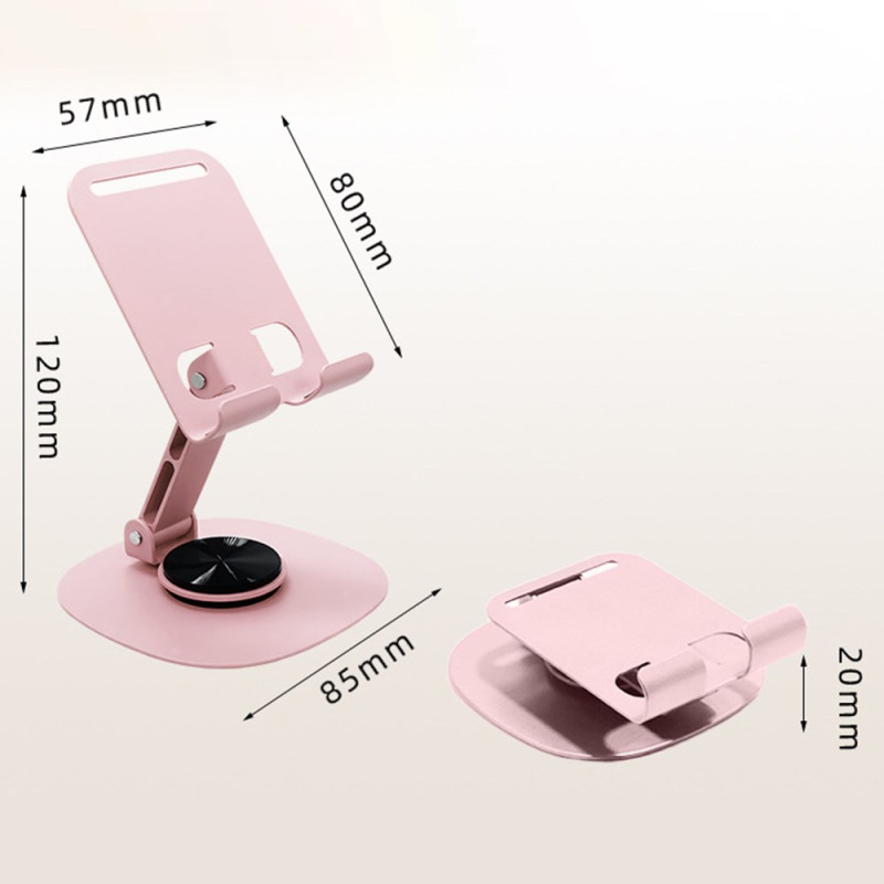 Soporte de escritorio universal con rotación de 360° para smartphones y tabletas. Diseño compacto y plegable para guardarlo y transportarlo fácilmente. Construcción robusta para máxima estabilidad al ver, trabajar o jugar.