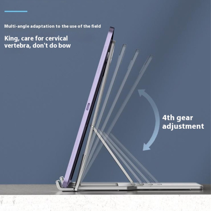 El soporte plegable H12PLUS ofrece una solución elegante, estable y versátil para sostener tabletas, pantallas y monitores portátiles de 5 a 16 pulgadas. Con sus 4 niveles de altura ajustables, que van aproximadamente de 146 a 165 mm, proporciona un ángulo de visión cómodo para trabajar, ver vídeos o dibujar. Su estructura de aleación de aluminio se combina con pies de silicona antideslizantes para garantizar una excelente estabilidad y proteger su equipo. Ultraplano, ligero y totalmente plegable, es fácil de transportar y también ayuda a mejorar la circulación del aire bajo sus dispositivos.