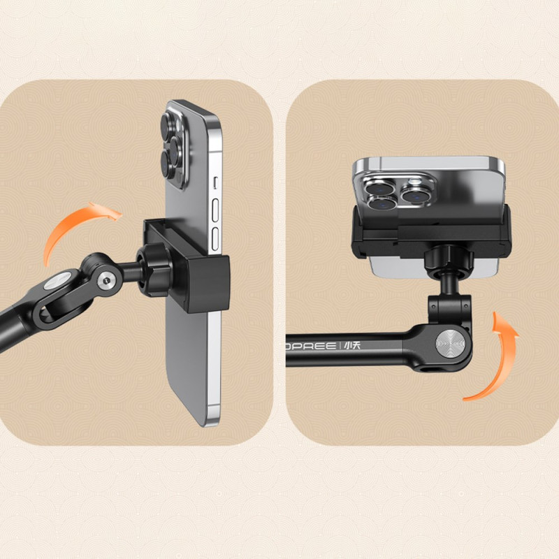 El soporte de suelo ajustable de Boneruy está diseñado para proporcionar una altura y libertad óptimas para filmar. Con su mástil telescópico extensible hasta unos 160 cm, permite filmar, fotografiar o grabar eventos en directo desde el ángulo perfecto. Su giro multidimensional de 360° ofrece una flexibilidad total para tomas aéreas, vídeos de demostración o sesiones de streaming. Fabricado en acero al carbono con una robusta base de PC, garantiza una excelente estabilidad. Compatible con la mayoría de smartphones de 6 a 9 cm de ancho, es ideal tanto para creadores de contenidos como para usuarios cotidianos.
