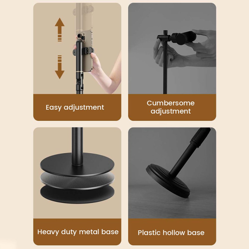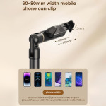 Este soporte de teléfono extensible y giratorio es ideal para streaming, creación de contenidos o videoconferencias. Su brazo ajustable de 53 a 63 cm facilita el ajuste de la altura para un encuadre perfecto, mientras que el giro de 360° permite cambiar rápidamente entre los modos vertical y horizontal. Fabricado en acero al carbono, aleación de aluminio y ABS, ofrece una excelente estabilidad incluso al hacer tomas aéreas. Compatible con smartphones de 6 a 8 cm de ancho, se adapta a la mayoría de los modelos modernos. Sólido y compacto, es un soporte fiable para el uso diario.