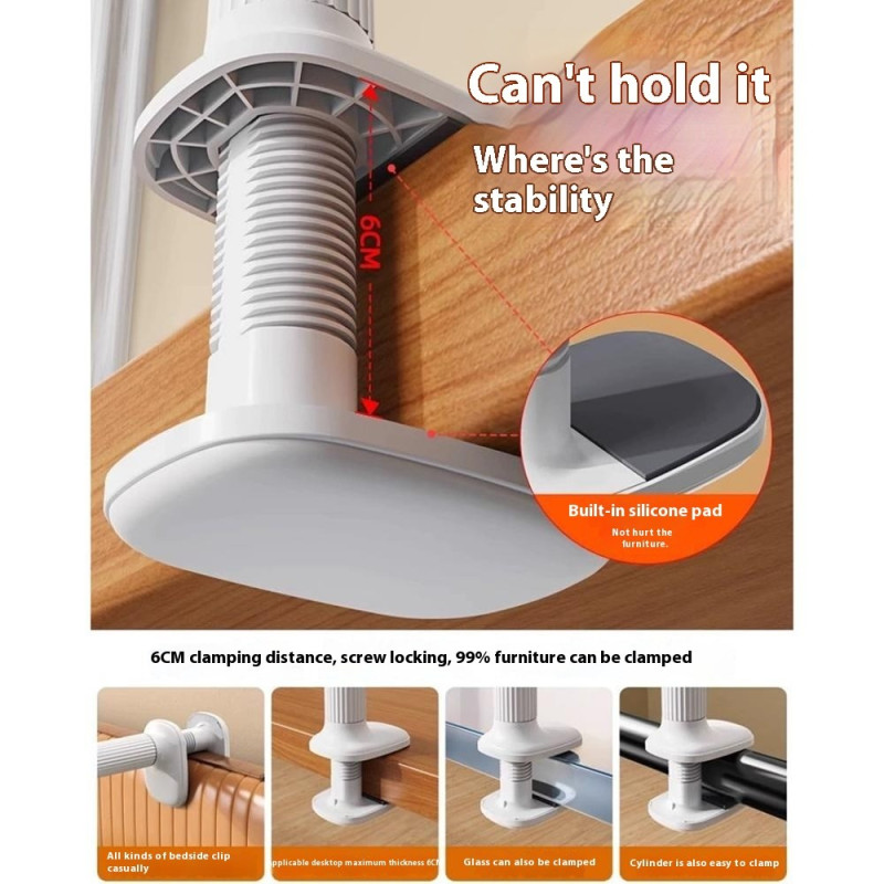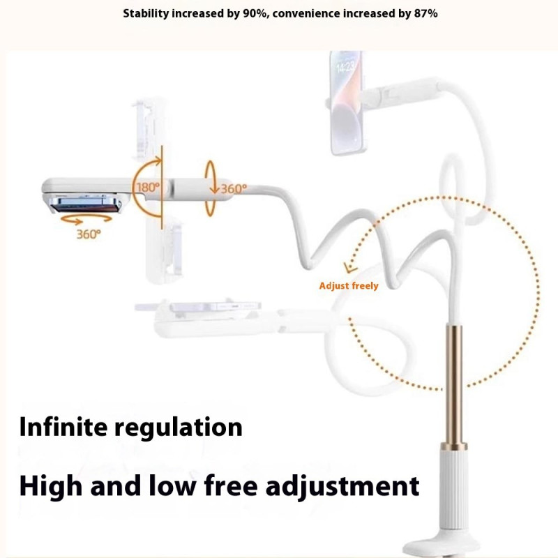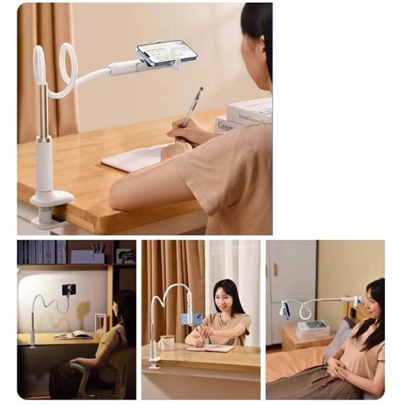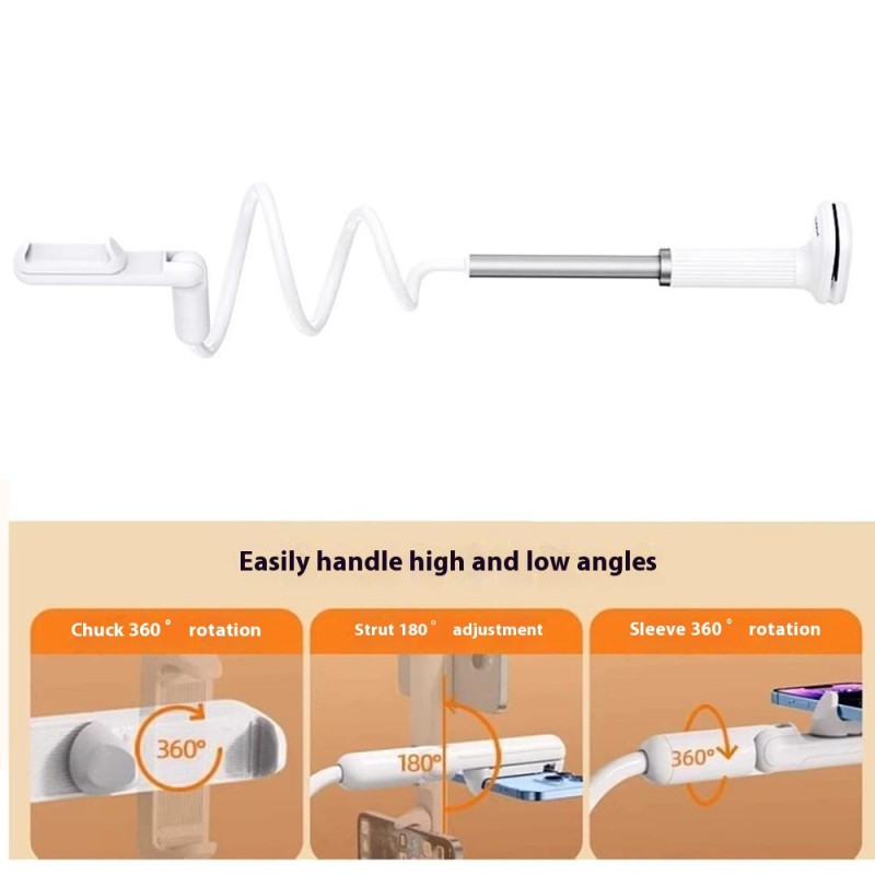 Este flexible soporte para teléfono de mesilla de noche ofrece total libertad gracias a su impresionante rotación de 900°, que permite ajustar el ángulo a la perfección para la transmisión en streaming, las videollamadas o la visualización desde la cama. Su largo brazo de 110 cm garantiza un alcance ideal a la vez que se mantiene estable gracias a su estructura de aleación de aluminio, su varilla con núcleo metálico y su resistente plástico ABS. El clip revestido de silicona protege el smartphone o la tableta y garantiza una sujeción segura. Diseñado para un uso cómodo y sin manos, se adapta a todas las configuraciones de habitación.