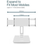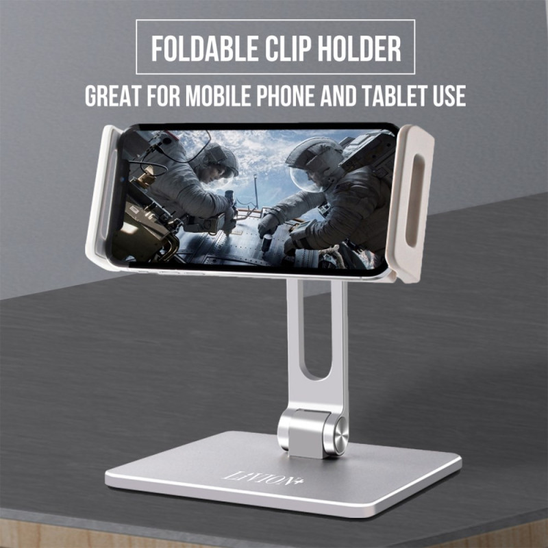 Este soporte de escritorio plegable para teléfonos y tabletas ofrece una solución versátil y cómoda para trabajar, entretenerse o realizar videollamadas. Gracias a su ángulo ajustable de 180°, permite encontrar la posición ideal para un uso prolongado sin fatiga. Fabricado en aleación de aluminio, silicona y ABS, es robusto, estable y protege su equipo. Su apertura ajustable de 118 a 245 mm se adapta a una amplia gama de smartphones y tabletas. Su formato plegable lo convierte en un accesorio compacto y fácil de transportar, perfecto para usar en la oficina, en estuche o de viaje.