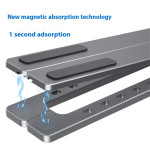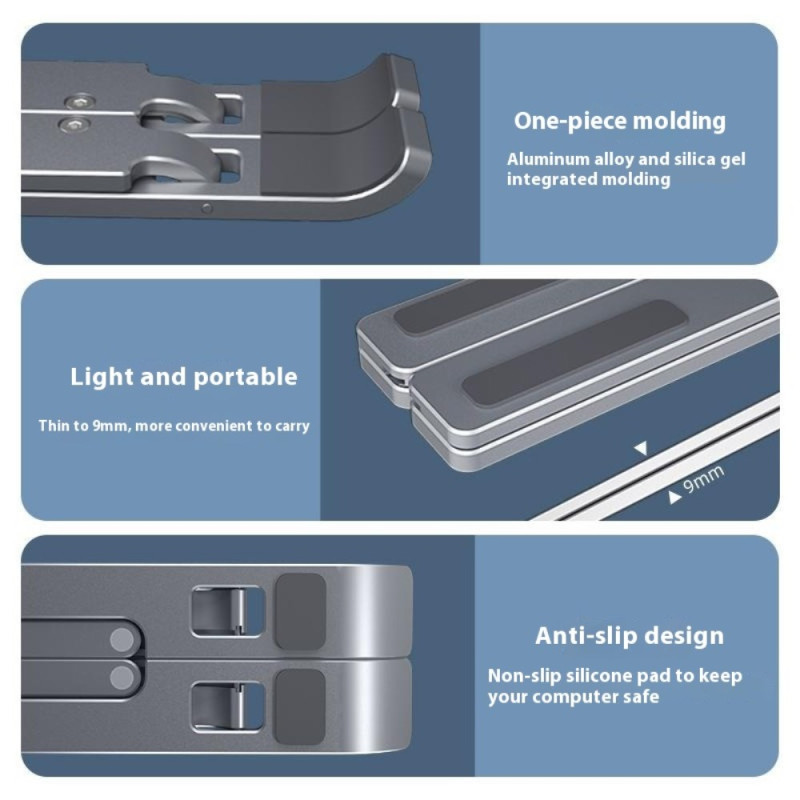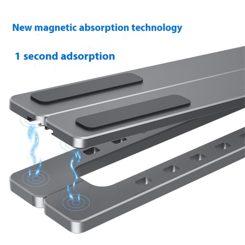 El soporte magnético plegable X3 para portátiles y tabletas se ha diseñado para ofrecer movilidad, estabilidad y facilidad de uso. Gracias a su ingenioso sistema magnético, se despliega al instante y se pliega en segundos, por lo que es ideal para viajar. Fabricado en aluminio de alta calidad, es extremadamente rígido y ligero, con un peso de sólo 200 g. Sus patas de silicona antideslizantes protegen el dispositivo y garantizan un uso sin resbalones. Compatible con dispositivos de hasta 17", eleva la pantalla a una altura ergonómica, aliviando la tensión del cuello y los hombros.