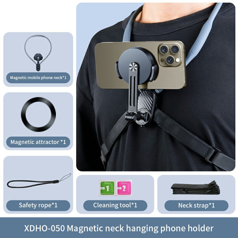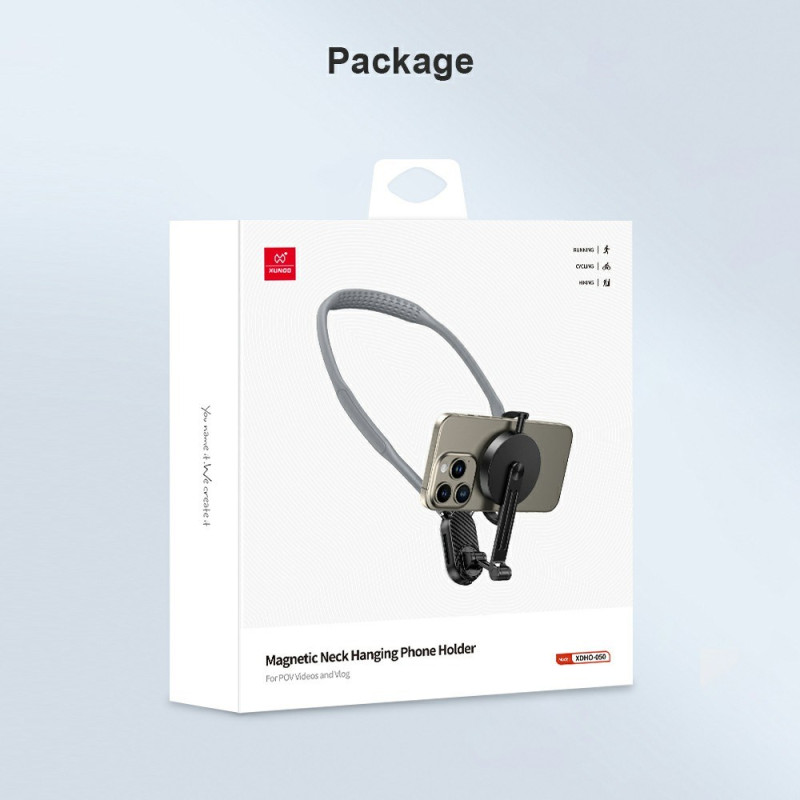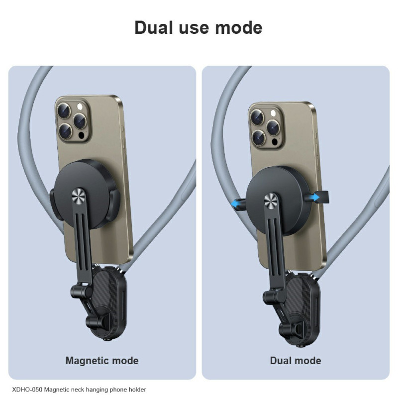 El soporte magnético de cuello para teléfono XUNDD XDHO-050 ofrece una comodidad excepcional para grabar, seguir un tutorial o utilizar el smartphone con las manos libres. Su potente adsorción magnética mantiene el teléfono perfectamente estable, incluso en movimiento. Su diseño ergonómico con silicona expandida distribuye el peso por el cuello, reduciendo la presión y la fatiga cervical. La función antivibración integrada limita las vibraciones para obtener tomas más nítidas. Gracias a su modo dual -normal y magnético- es ideal para todo tipo de usos, ya sea para vlogging, deporte o consulta con manos libres.