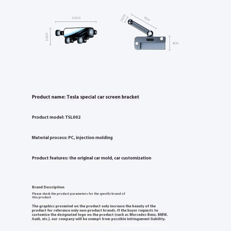 Elegante soporte para teléfono por gravedad diseñado específicamente para la pantalla suspendida de tu Tesla Model 3 o Model Y. Fácil instalación sin dañar la pantalla, brazo ajustable y rotación libre de 360°. Diseño antivibración para mantener tu teléfono seguro mientras conduces.