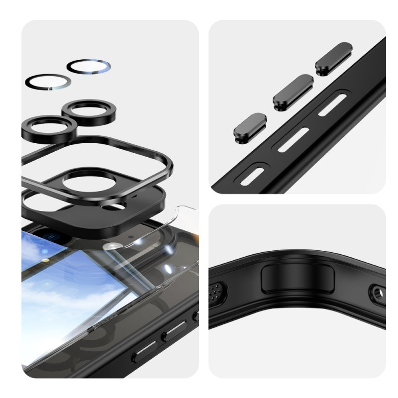Descubre nuestra funda protectora completa para iPhone 12. Combina una funda de TPU transparente y una lámina de cristal templado para ofrecer la máxima protección contra golpes y arañazos. Con su diseño anticaída con amortiguación de aire, botones metálicos independientes y protección integrada para la lente, esta funda combina seguridad y funcionalidad.