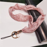 para teléfono, que combina estilo y practicidad. Con su pañuelo de seda floral y su colgante decorativo, combina estilo y funcionalidad.