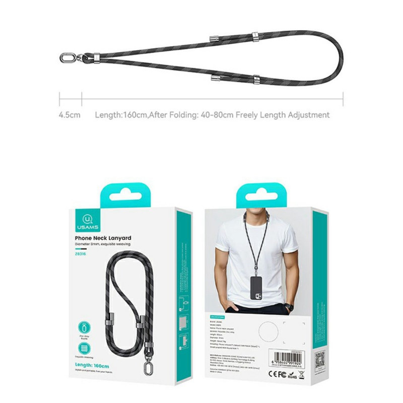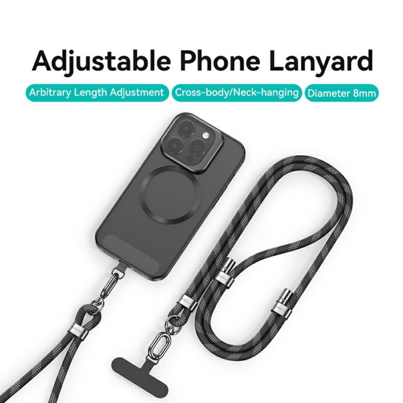 Descubra nuestro cordón ajustable para teléfono móvil. Fabricado en poliéster resistente con una hebilla de aleación de zinc, este cordón de 160 cm ofrece versatilidad y estilo.