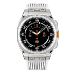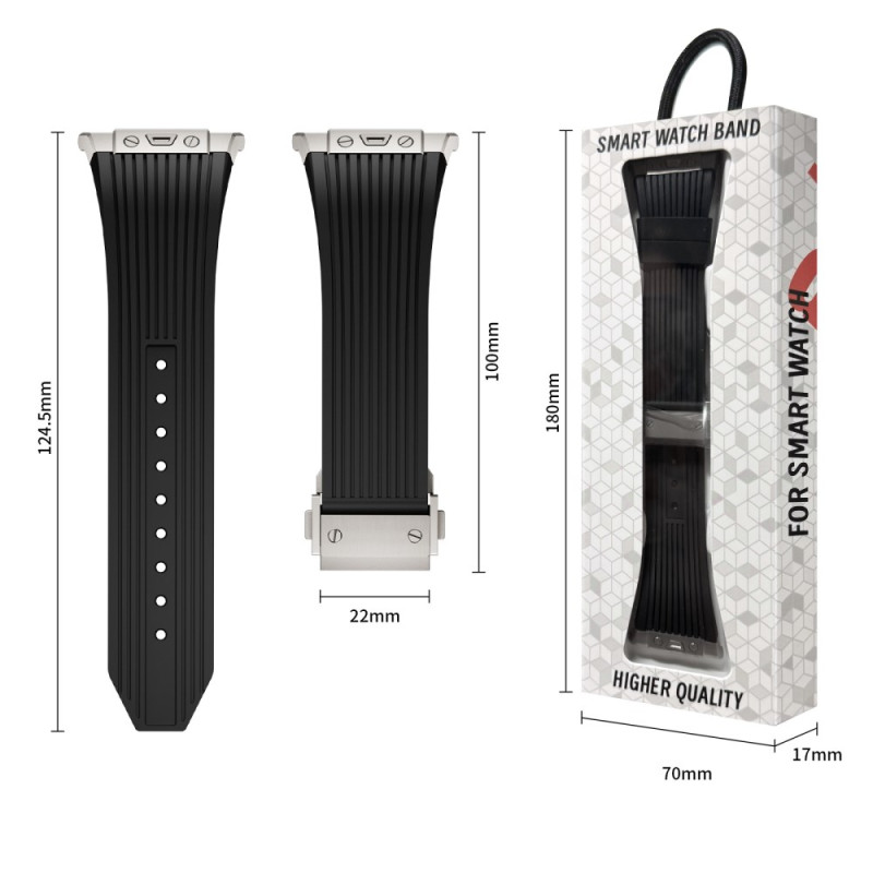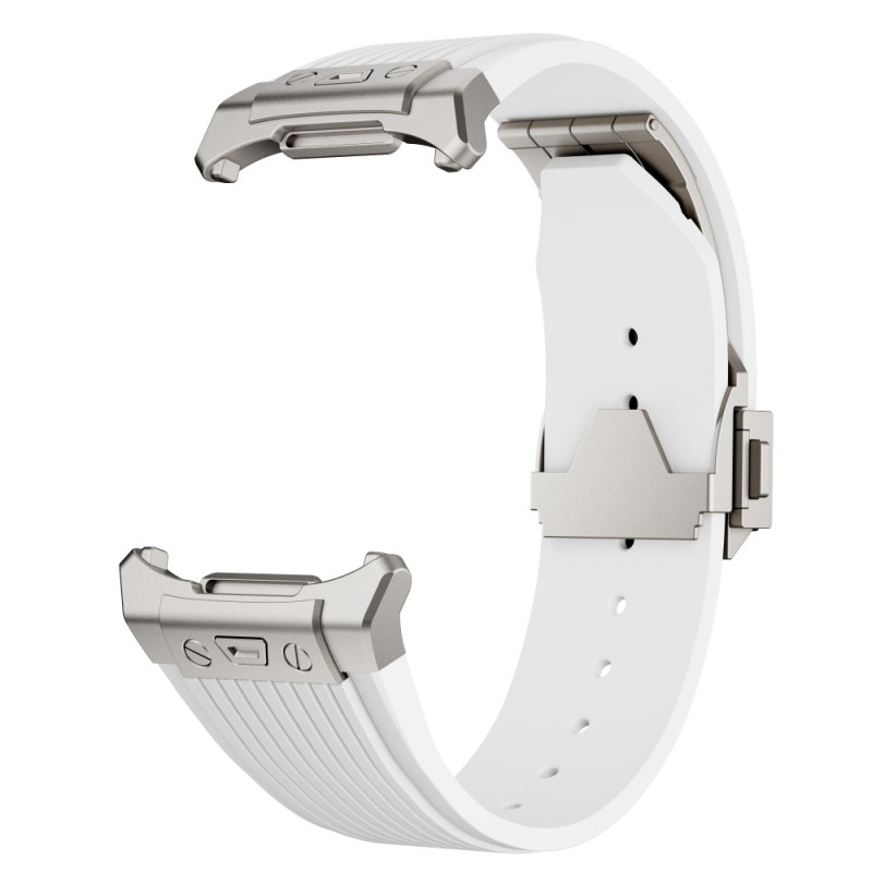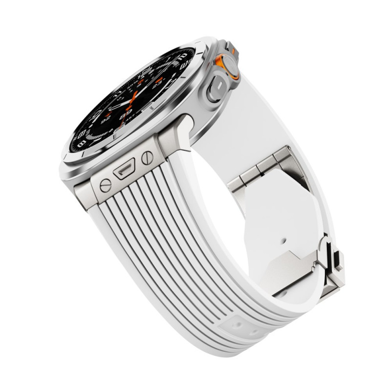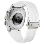 Descubre nuestra pulsera de silicona para Samsung Galaxy Watch Ultra de 47 mm. Suave, flexible y cómoda, cuenta con una hebilla plegable plateada para un cierre seguro y fácil.
