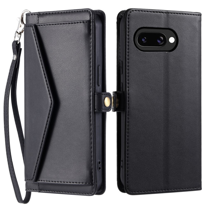 Elegante funda monedero para Google Pixel 10A con práctica colgante de mano y soporte ajustable. Cuenta con 3 ranuras para tarjetas y 1 compartimento para efectivo. Protección total contra arañazos con orificio receptor para que puedas responder a las llamadas sin abrir la funda.