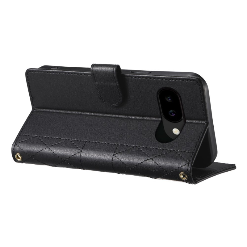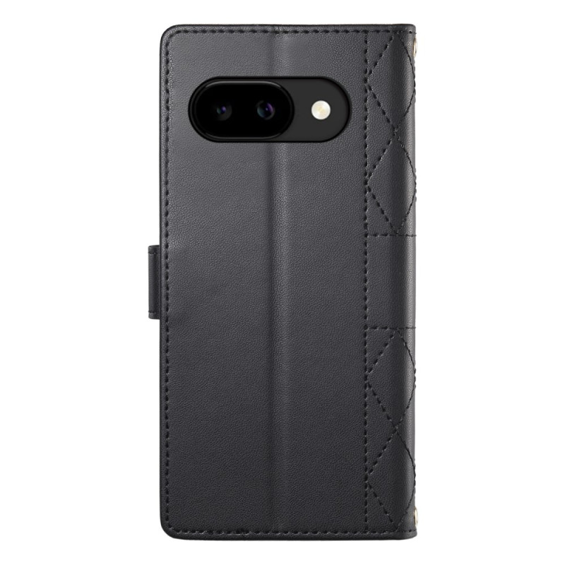 Elegante funda monedero de piel de PU con estampado de diamantes para Google Pixel 10A. Cuenta con 3 ranuras para tarjetas, 1 bolsillo para efectivo, función de soporte integrada y cierre magnético. Viene con colgante de hombro desmontable y ajustable (70-150 cm) y colgante de mano para llevarla cómodamente.