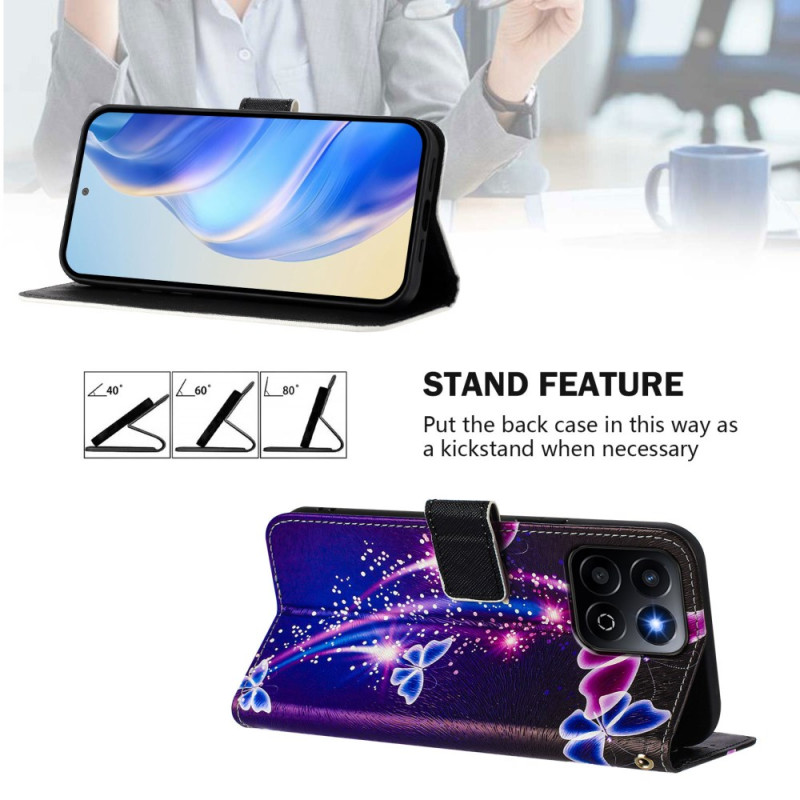 Convierte tu Honor X7c 5G / 4G / 200 Smart 5G en un accesorio de moda con esta elegante funda monedero con un bonito diseño de mariposas de fuegos artificiales. Disfruta de un soporte multiángulo ajustable, una colgante de muñeca segura y varias ranuras para tarjetas.