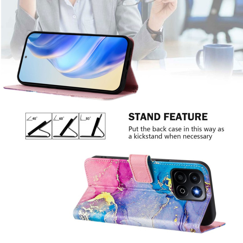 Protege tu Honor X7c 5G / 4G / 200 Smart 5G con estilo gracias a esta elegante funda tipo cartera con diseño de mármol multicolor. Incluye un soporte ajustable multiángulo, una colgante de muñeca segura y compartimentos para tarjetas y dinero en efectivo.