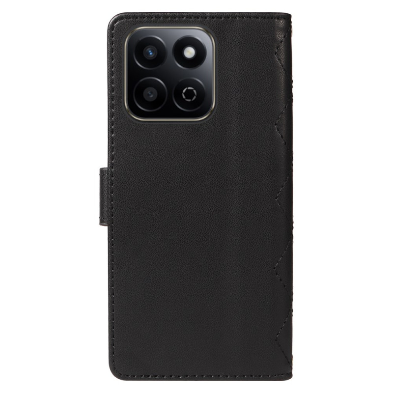 Étui portefeuille élégant avec motif losange pour Honor X7c 4G / 200 Smart 5G. Conception multifonctionnelle avec 3 emplacements pour cartes, poche pour billets et fonction support. Livré avec bandoulière et dragonne pour un transport pratique.