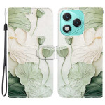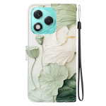 Descubre la elegancia y la practicidad con esta funda cartera para Honor 400 Lite 5G. Adornada con un refinado motivo de loto, combina piel sintética de primera calidad con un soporte plegable integrado. Guarda tarjetas y dinero en efectivo en sus compartimentos específicos.