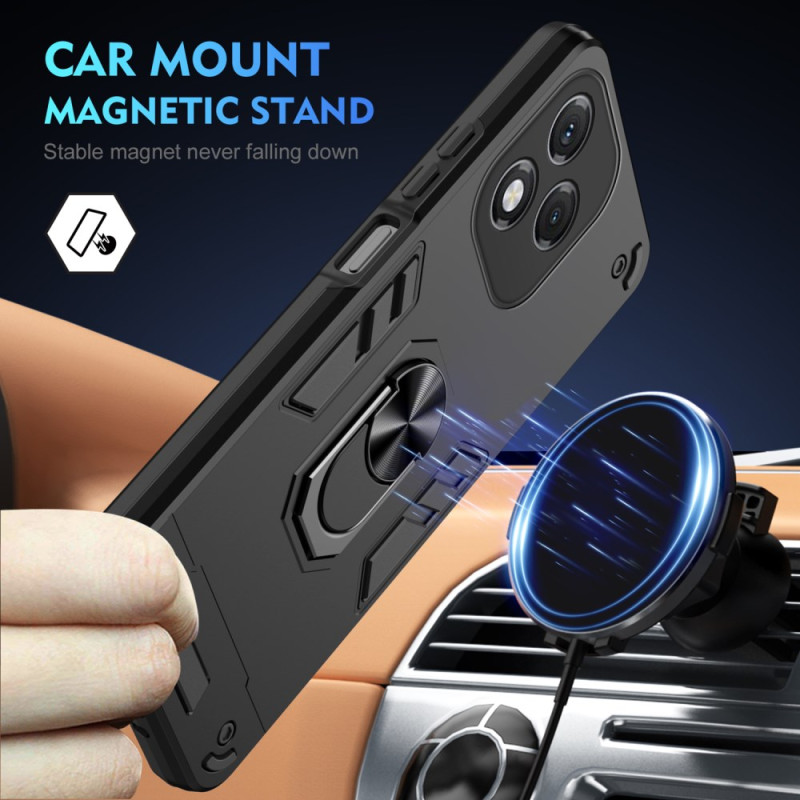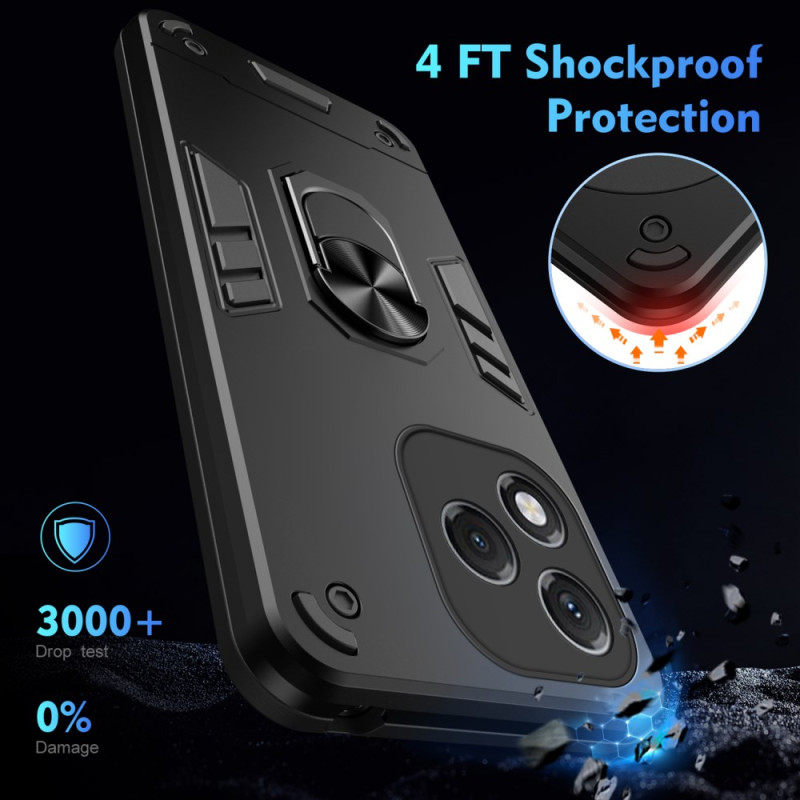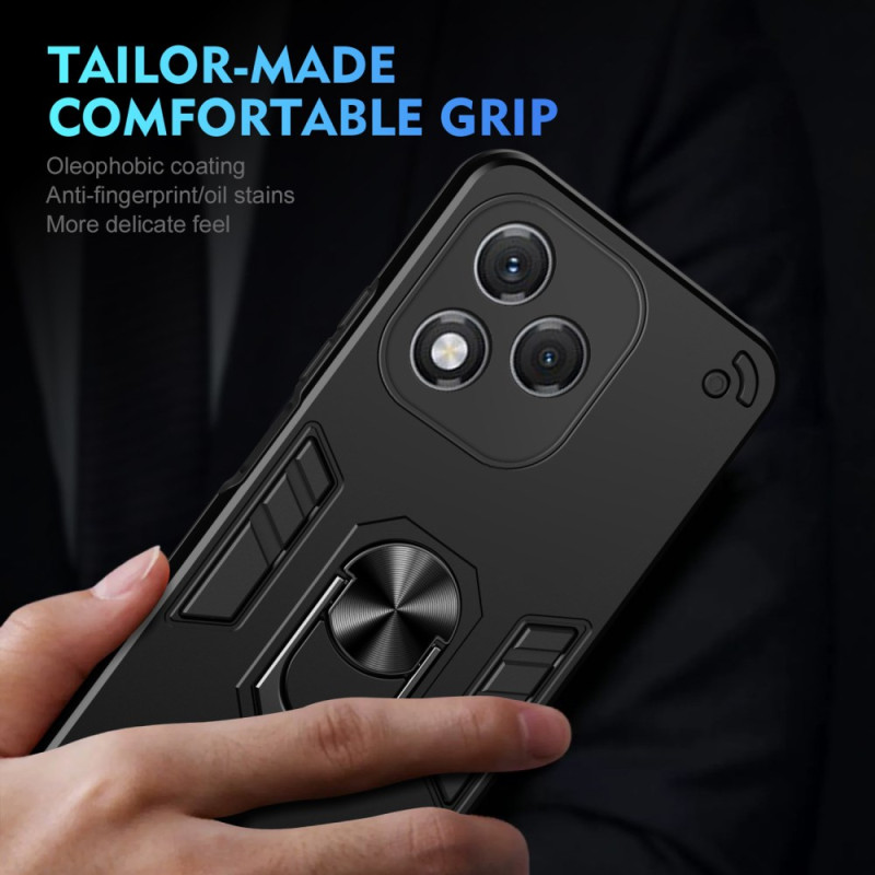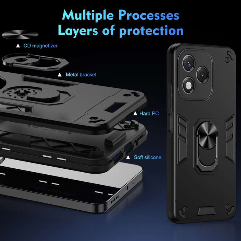 Protege tu Honor 400 Lite 5G con esta resistente funda con anillo de soporte giratorio 360°. Diseño anti-caída con materiales híbridos para una protección óptima. Compatible con soporte magnético para coche para un uso seguro.