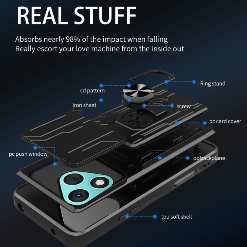 Funda robusta para Honor 400 Lite 5G con pie metálico retráctil, protección deslizante para la cámara y tarjetero integrado. Compatible con soporte magnético para coche. Protección reforzada contra golpes y caídas.