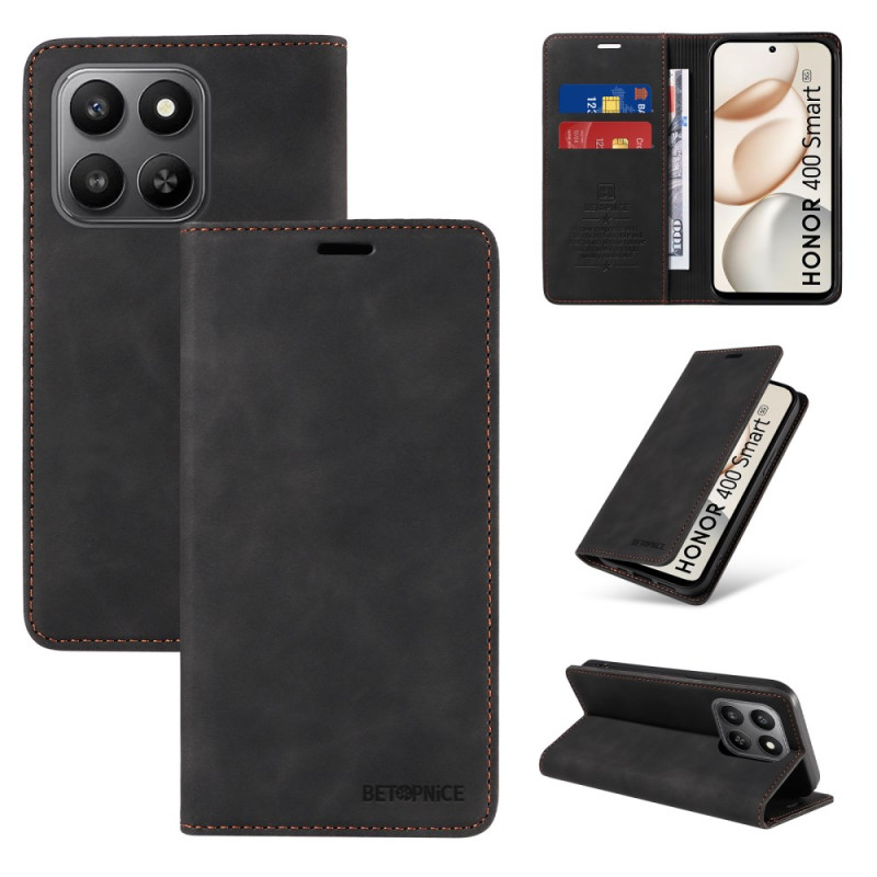 Descubre la funda Honor 400 Smart 5G / 4G BETOPNICE, que combina protección y funcionalidad. Fabricada en piel de PU y TPU, ofrece una protección completa contra el desgaste diario. Cuenta con un cierre magnético seguro, tecnología de bloqueo RFID y un práctico diseño de cartera con soporte integrado.