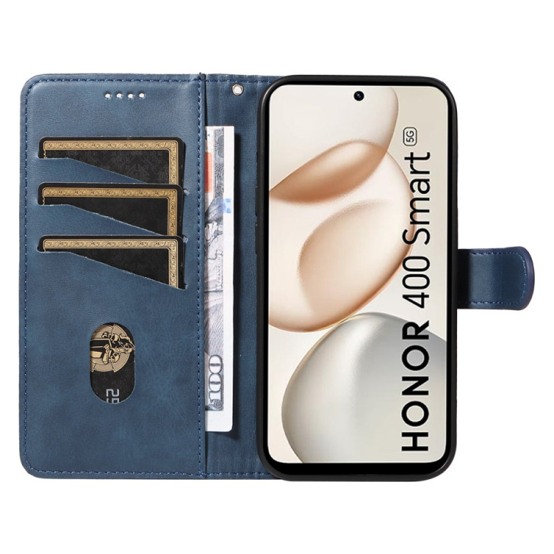 Descubre nuestra elegante y funcional funda cartera para Honor 400 Smart 5G / 4G. Fabricada en piel de PU texturizada de alta calidad con un interior de TPU mate, ofrece una protección completa y un tacto agradable. Con sus líneas en T impresas, ranuras para tarjetas, soporte integrado y cierre magnético, esta funda combina estilo y practicidad para un uso diario óptimo.