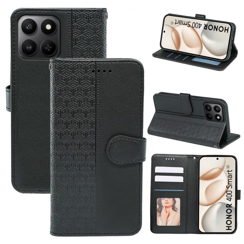Descubre nuestra elegante funda cartera para Honor 400 Smart 5G / 4G. Fabricada en piel PU de alta calidad con un estampado en forma de cubo, ofrece una protección duradera y un estilo refinado. Con ranuras para tarjetas y billetes, un soporte integrado para manos libres y un cierre magnético seguro, esta funda combina funcionalidad con una protección completa para tu dispositivo.