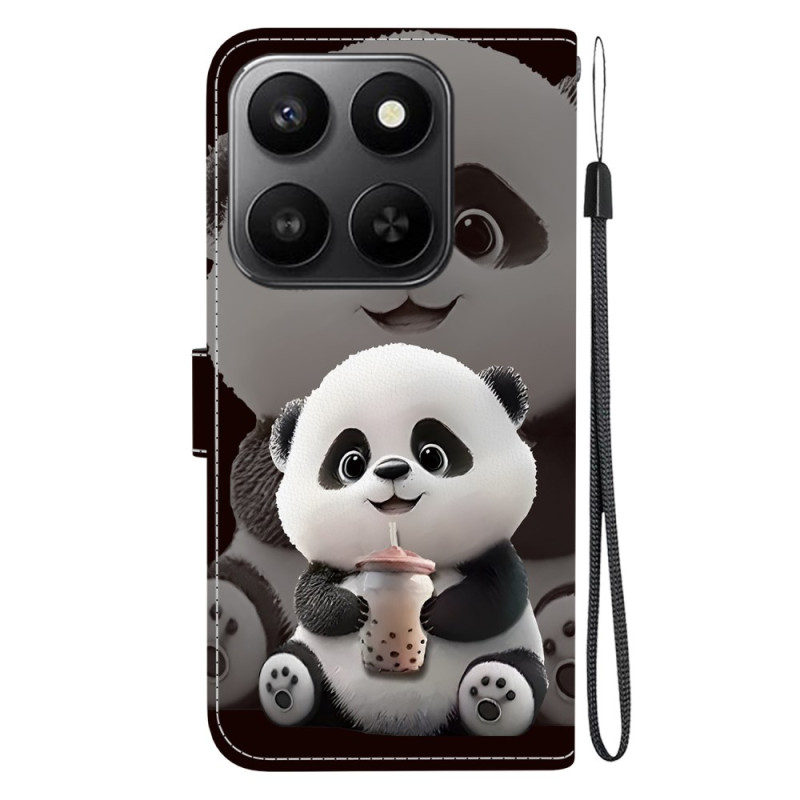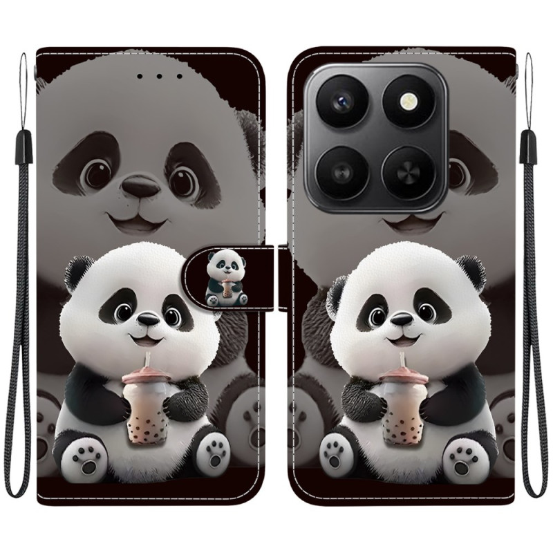 Elegante estuche billetero con adorable motivo de panda de té con leche. Soporte integrado para tener las manos libres, 2 ranuras para tarjetas y compartimento para billetes. Cierre magnético seguro y colgante de mano desmontable para facilitar el transporte diario.