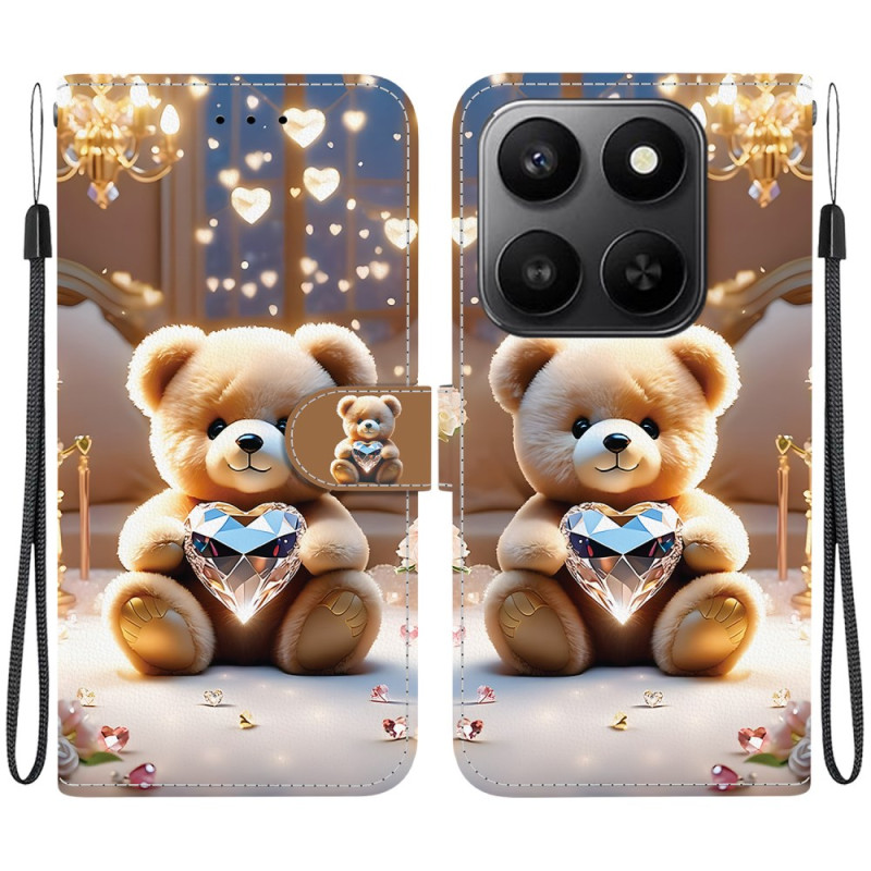 Protege tu Honor con estilo con esta funda cartera multifunción. Diseño refinado con motivo de oso diamante, soporte desplegable integrado, 2 ranuras para tarjetas y compartimento para billetes. Cierre magnético seguro y colgante de mano desmontable para facilitar el transporte diario.