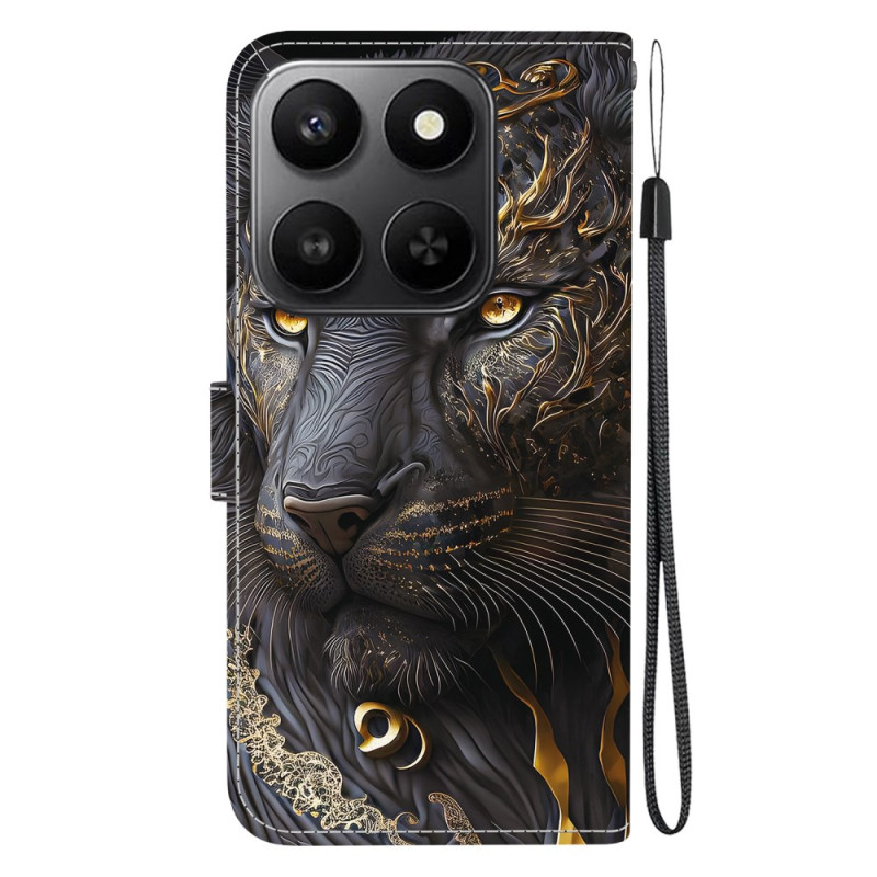 Descubre esta elegante funda cartera con motivo de león negro y dorado para tu Honor 400 Smart 5G / 4G. Diseño sofisticado con soporte plegable, 2 ranuras para tarjetas y compartimento para billetes. Protección magnética segura y colgante de mano extraíble incluidas....