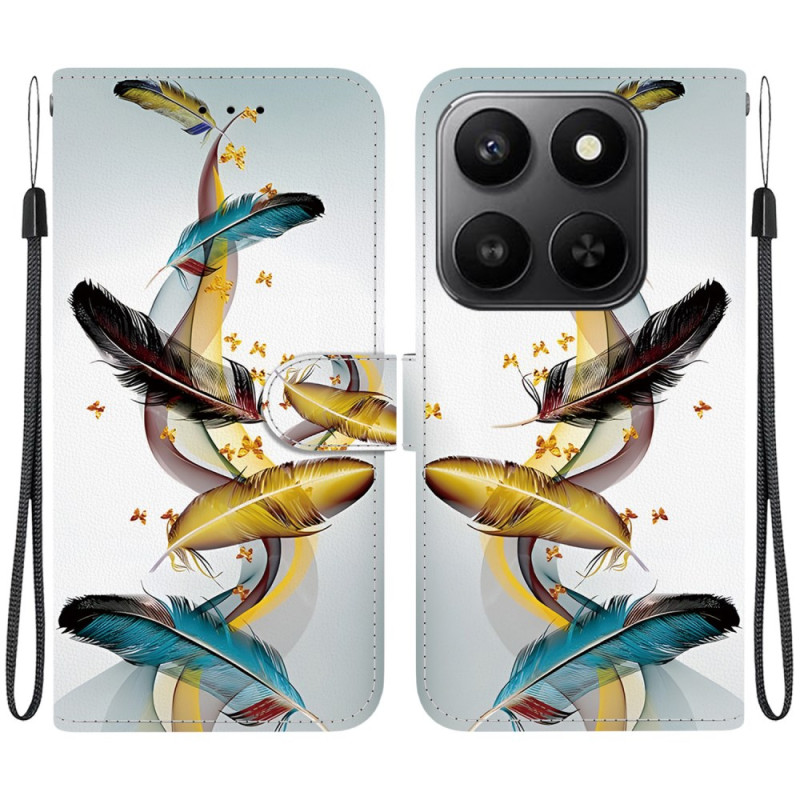 Protege tu Honor con estilo con esta funda cartera de piel sintética con un colorido estampado de plumas. Con soporte manos libres, ranuras para tarjetas y un cierre magnético seguro, combina estilo y funcionalidad.