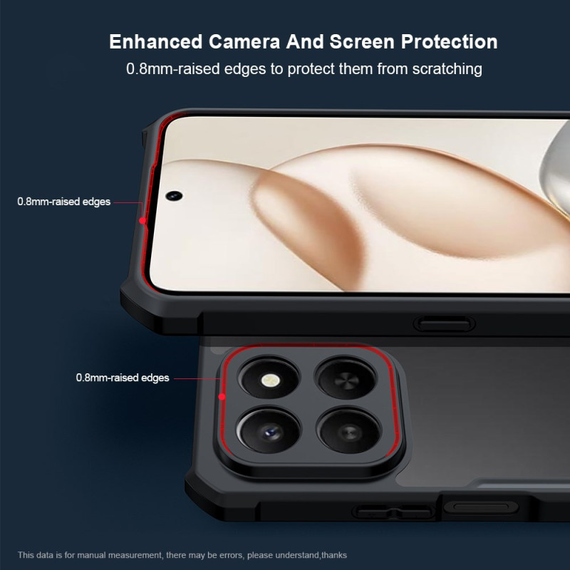 Protege tu Honor 400 Smart 5G / X7d 4G con estilo gracias a esta funda ultrarresistente que combina acrílico rígido y un marco flexible. Su tecnología de airbag absorbe los golpes, mientras que los bordes elevados protegen la pantalla y la cámara.