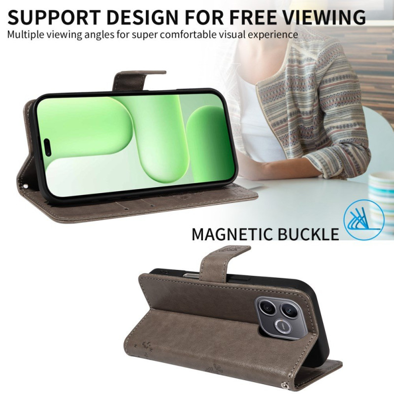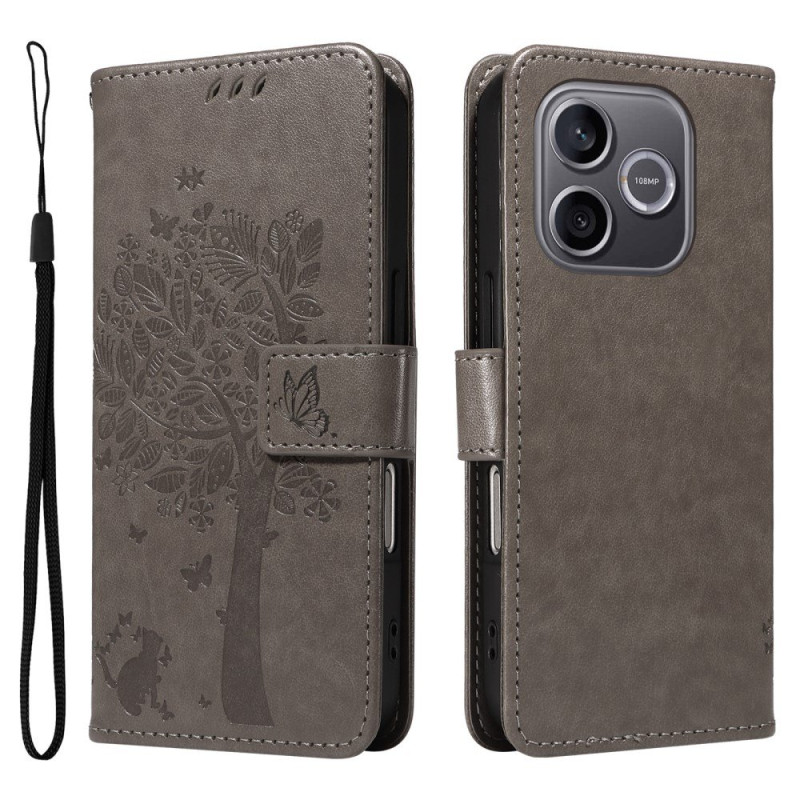 Protege tu Honor 600 lite 5G con esta elegante funda cartera con motivos de un gato y un árbol.