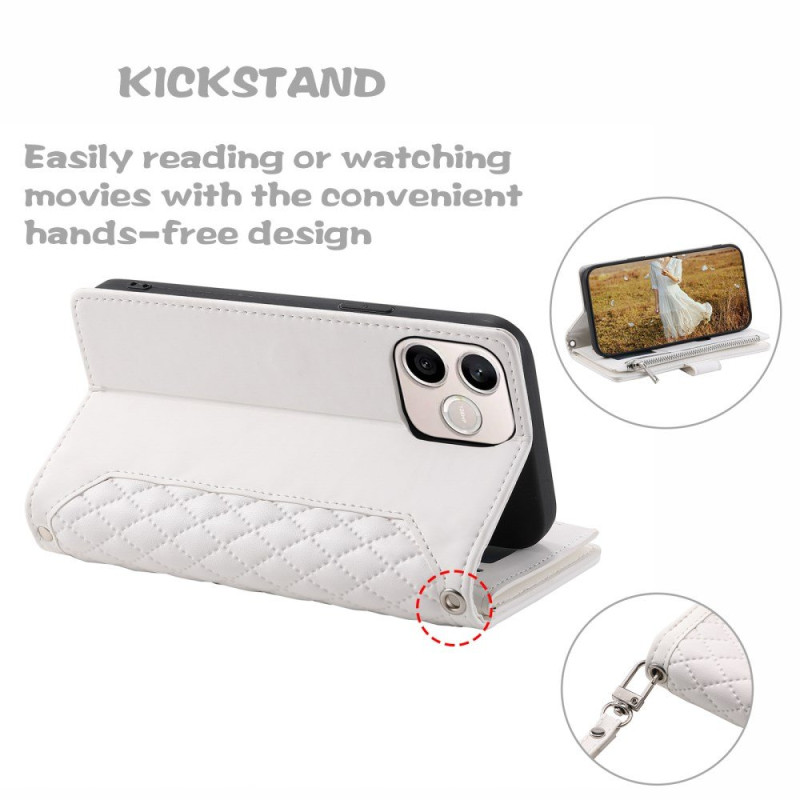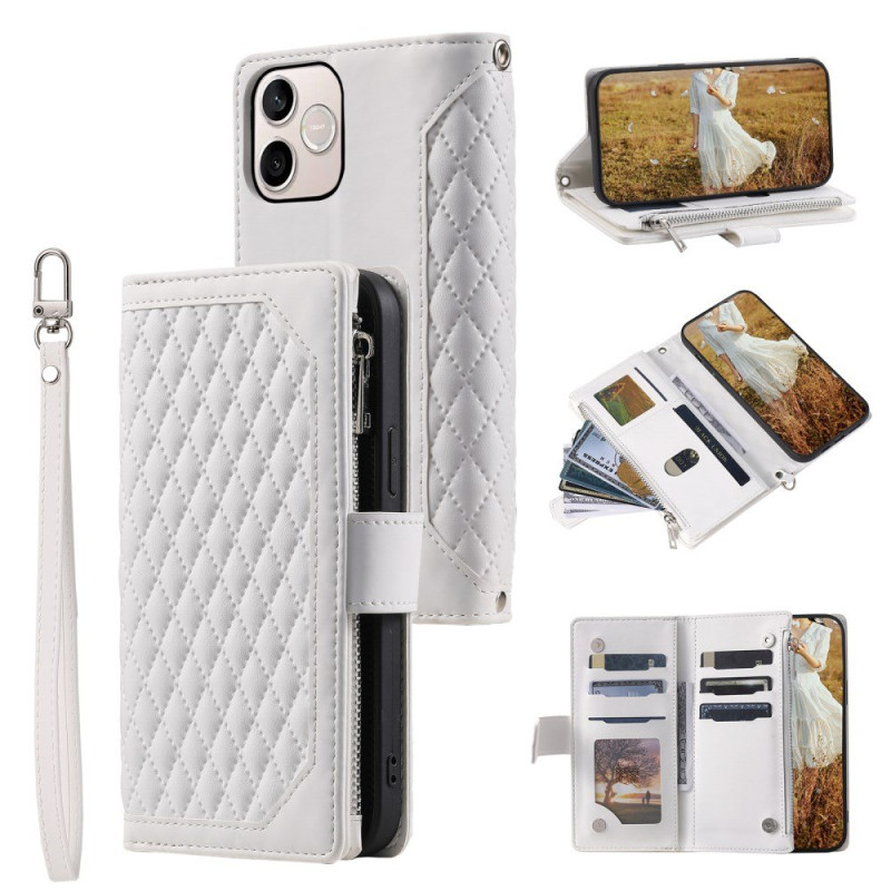 Su estampado de rombos cosidos añade un incomparable toque de elegancia, mientras que su diseño todo en uno sustituye a su cartera.