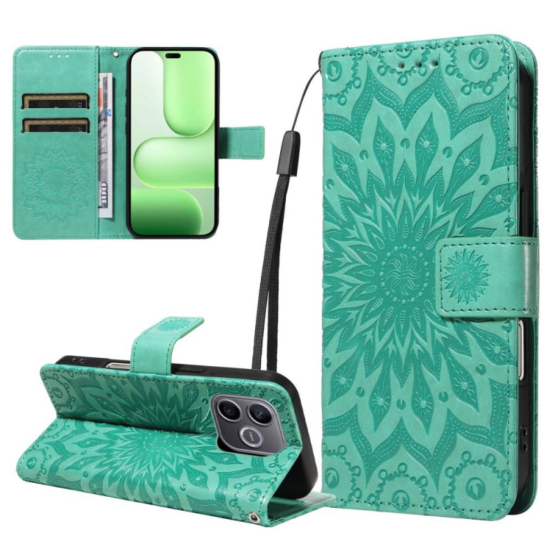 Te encantará esta funda cartera con motivo de mandala en relieve, diseñada para realzar tu Honor 600 Lite 5G.