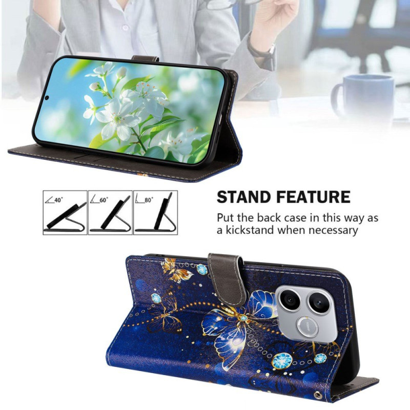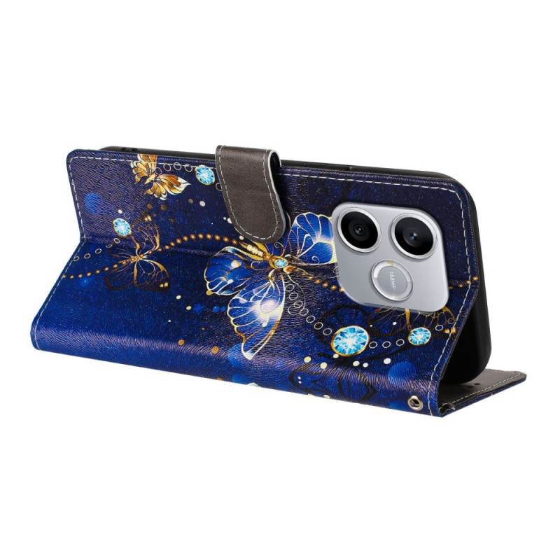Te encantará esta funda cartera con motivo de mariposa azul, diseñada para realzar tu Honor 600 Lite 5G.
