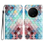 Elegante funda tipo cartera con estampado de cuadrícula para el Honor Magic 8 Pro 5G. Protección total con soporte ajustable, 3 ranuras para tarjetas, cierre magnético seguro y colgante de mano desmontable. Diseño sofisticado...