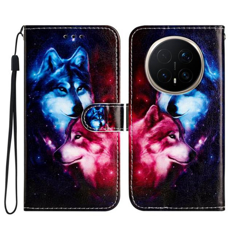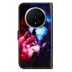Elegante funda cartera con motivo de lobo impreso para Honor Magic 8 Pro 5G. Protección completa de piel sintética con soporte ajustable, 3 ranuras para tarjetas, cierre magnético seguro y colgante de mano extraíble.