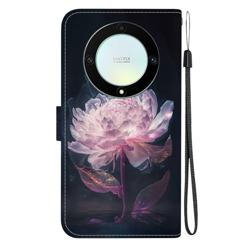 Esta funda de solapa, con un distintivo motivo de peonía morada, está diseñada para el Honor Magic 5 Lite 5G / X9a.