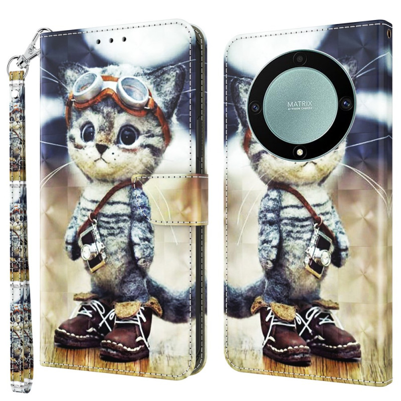 Esta funda de teléfono Aviator Cat para Honor Magic 5 Lite 5G / X9a cuenta con un patrón 3D único que añade un toque de estilo a su dispositivo.