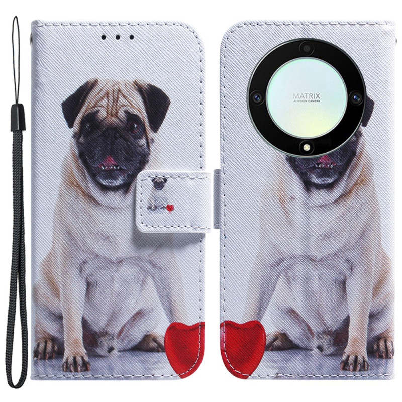 Dale a tu Honor Magic 5 Lite 5G / X9a un toque artístico protegiéndolo con esta funda estilo cartera de perro carlino.