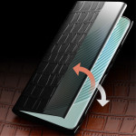- Funda La parte posterior de la de piel tiene un sensor de hibernación, de modo que cuando la ventana del teléfono está cerrada sobre la funda, entra en estado de espera de hibernación. Abre la funda de piel para despertar la pantalla.