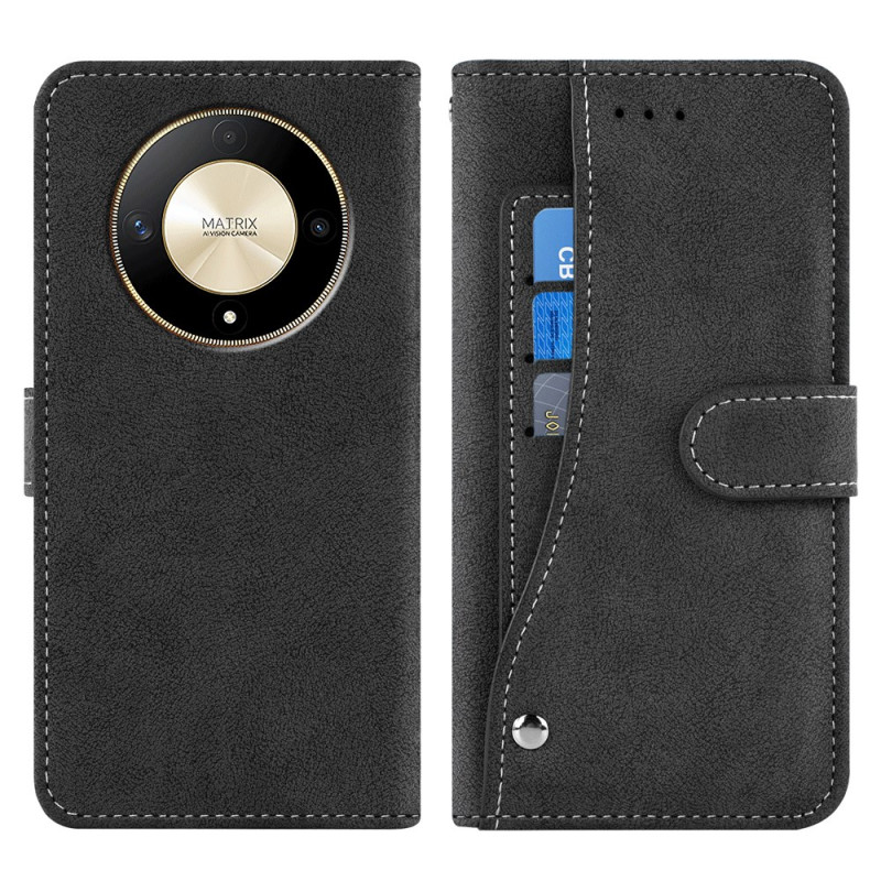 Elegante funda cartera de estilo retro para Honor Magic 6 Lite / X9b. Con 3 ranuras para tarjetas integradas, 1 bolsillo para billetes y un tarjetero giratorio externo. Función manos libres para ver tus vídeos.
