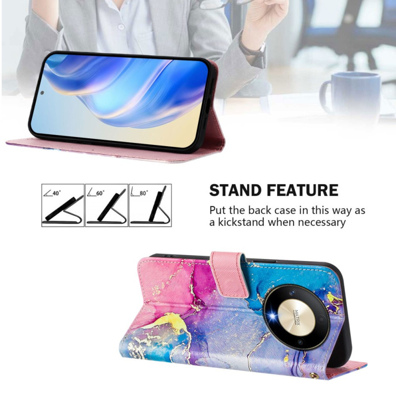 Protege tu Honor Magic 6 Lite / X9b con estilo gracias a esta elegante funda monedero con estampado de mármol multicolor. Con un soporte multiángulo ajustable, 3 ranuras para tarjetas y una colgante de muñeca segura, combina funcionalidad y protección.