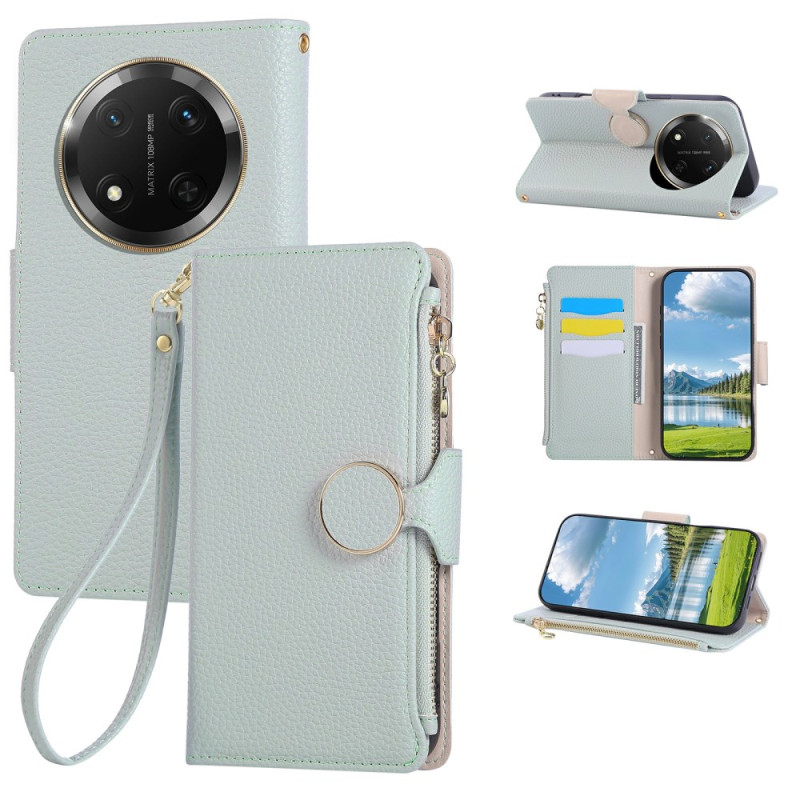 Funda cartera multifunción con cremallera para Honor Magic 7 Lite / X9c. Elegante diseño en piel de PU con funda de TPU a prueba de golpes, 3 ranuras para tarjetas, bolsillo lateral con cremallera y colgante de mano desmontable. Función de soporte integrada.